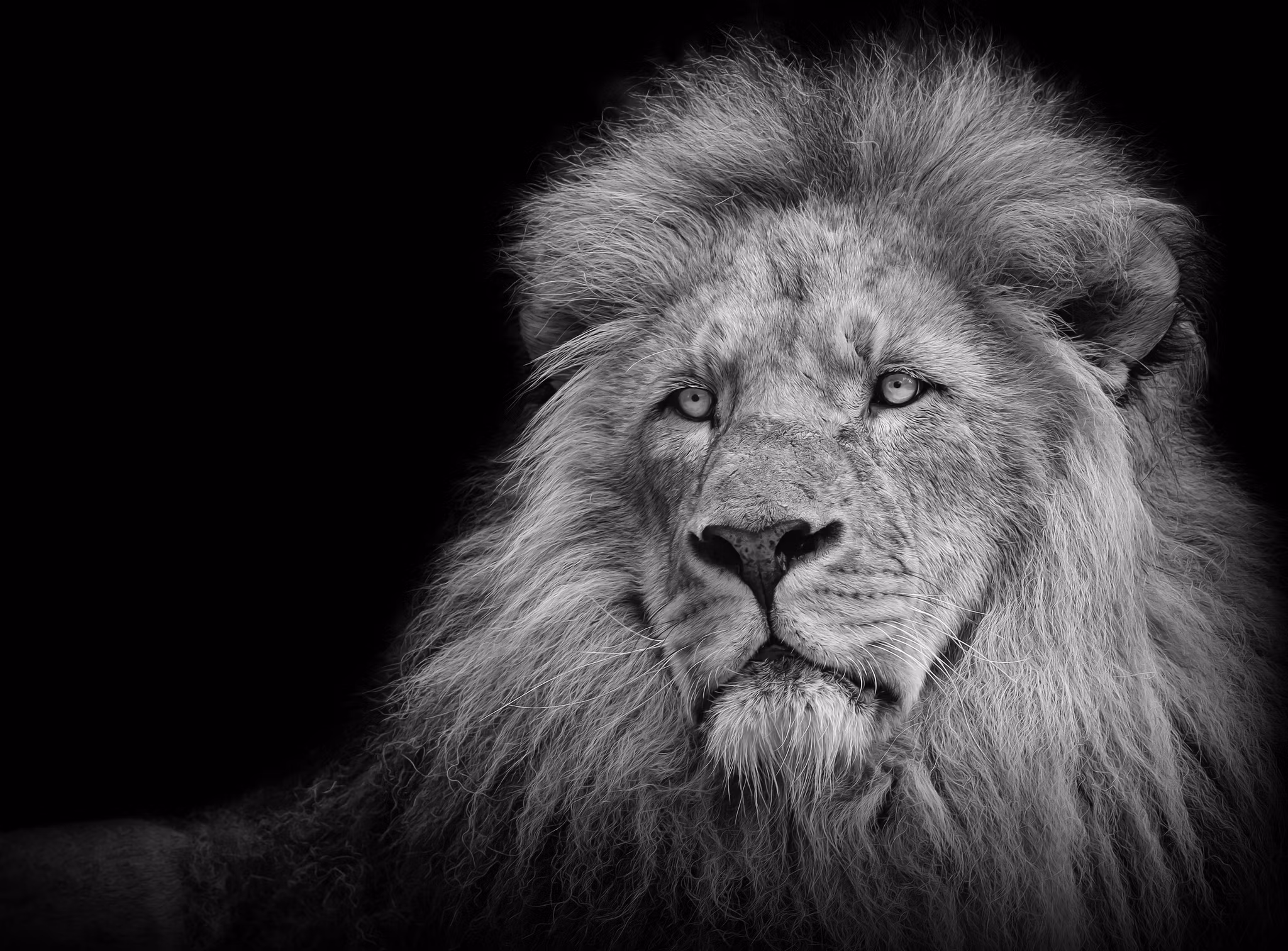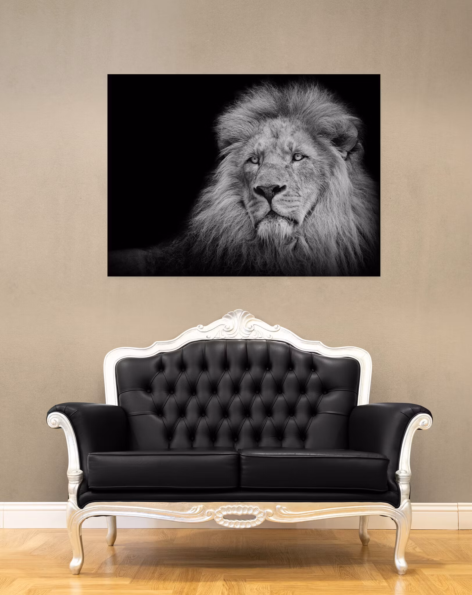 En flott løve i sort/hvitt. Gjør seg utrolig flott på alu-plate eller skumplate.